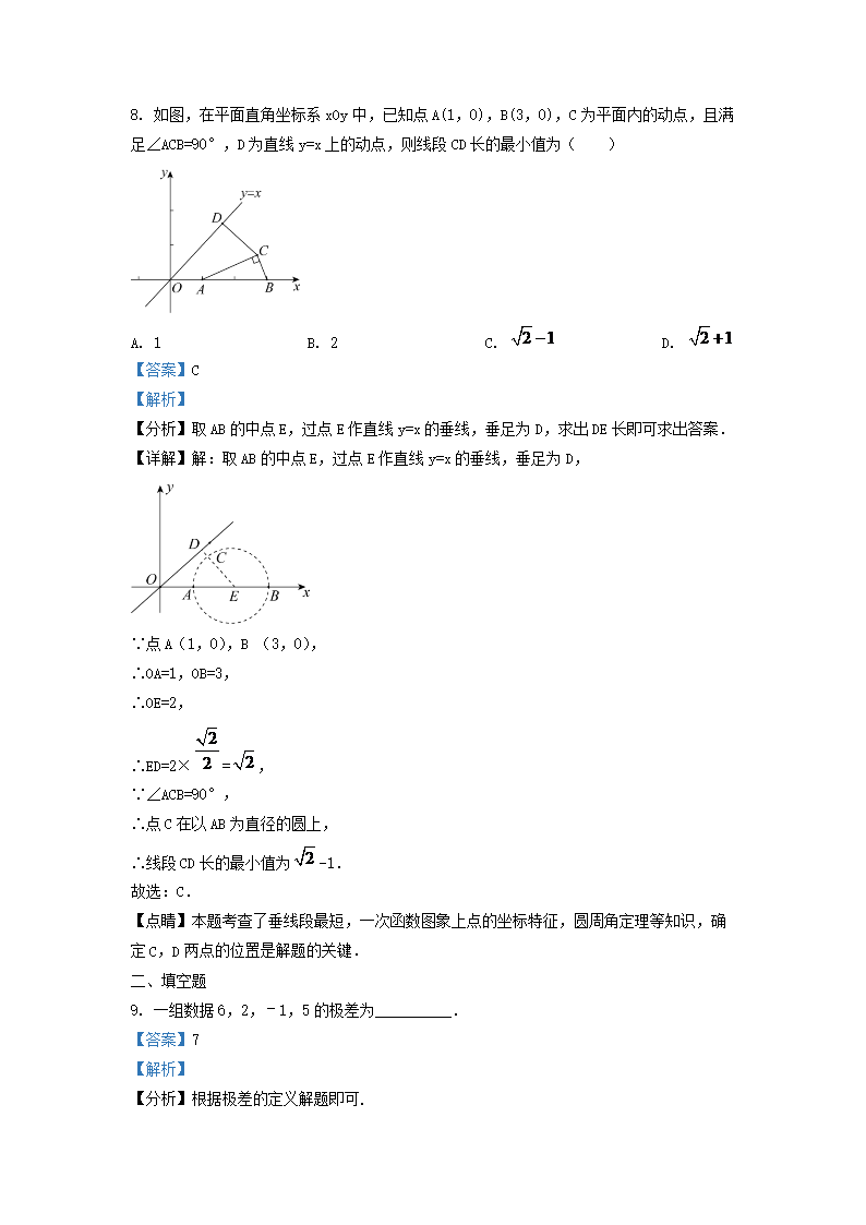 2021-2022学年江苏省扬州市邗江区九年级上学期数学期末考试题及答案(Word版)09-29