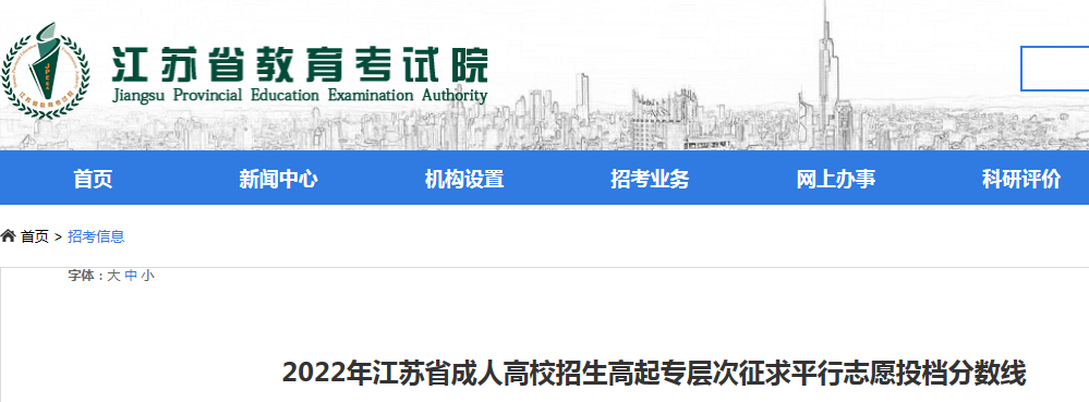 2022年江苏省成人高考高起专层次征求平行志愿投档分数线(附表格链接)12-27