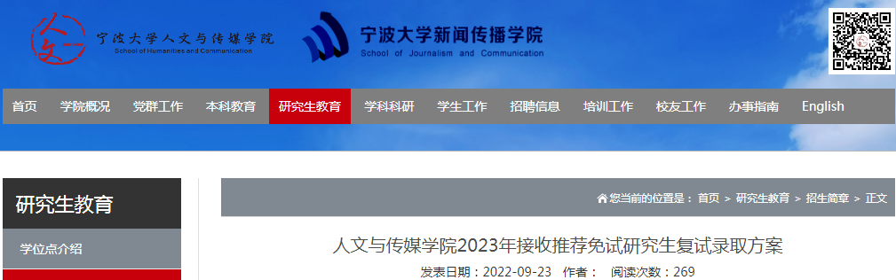 浙江:宁波大学人文与传媒学院2023年接收推荐免试研究生复试录取方案09-29