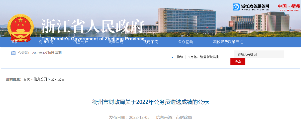 原文标题:衢州市财政局关于2022年公务员遴选成绩的公示