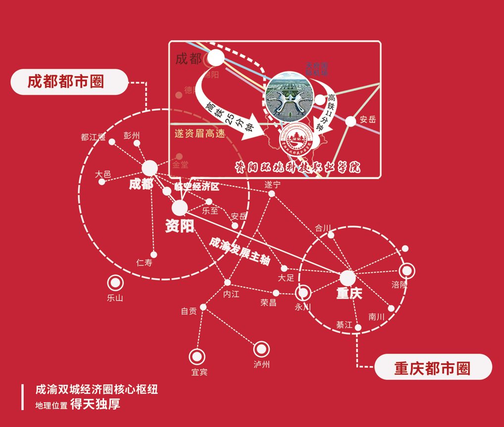 地处成都都市圈、成渝双城经济圈核心城市资阳,川内第一个通地铁的地级城市,离成都20分钟、天府国际机场8分钟车程。