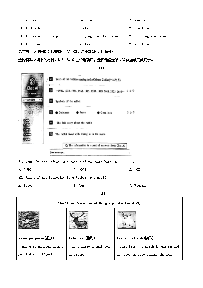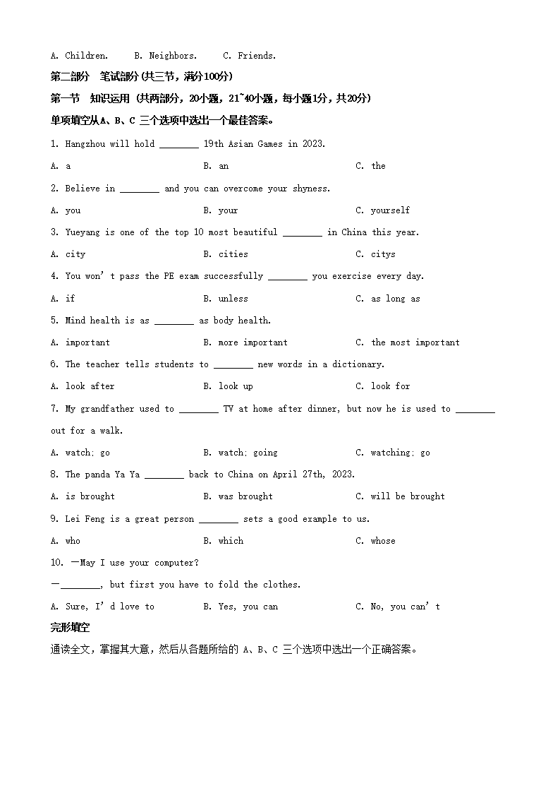 【文档预览】 文档大全网整理发布2023年湖南岳阳中考英语真题及答案(Word版),前五页预览如下: