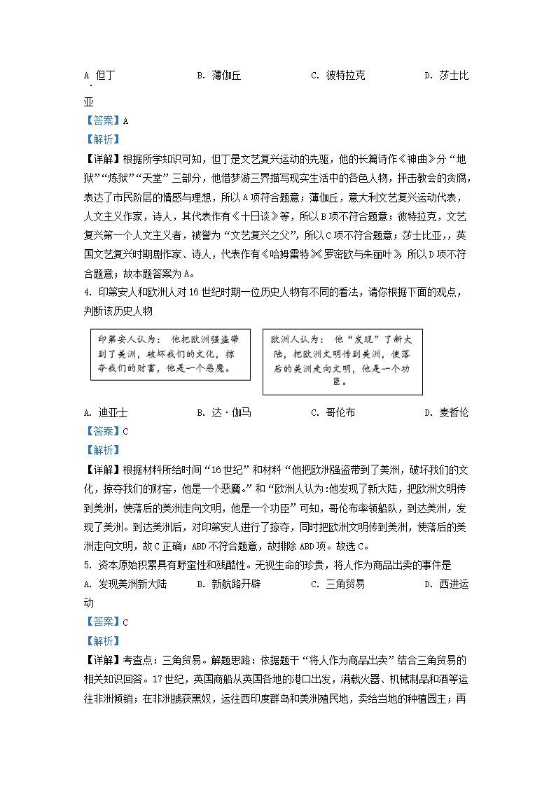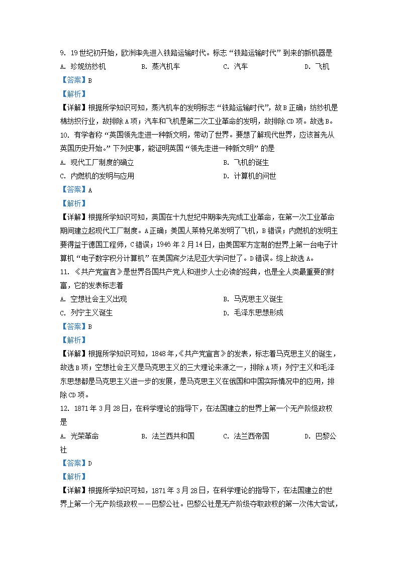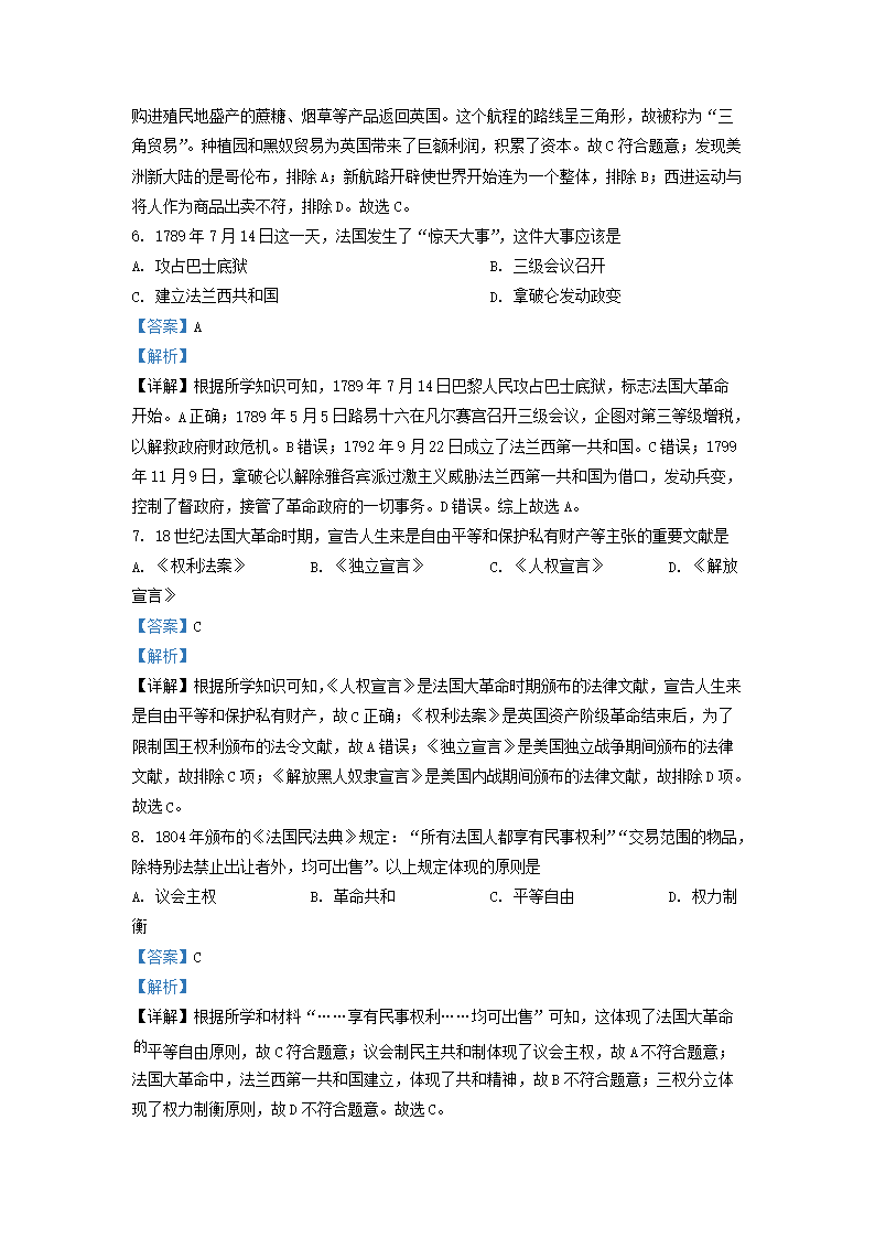 2020-2021学年北京顺义区初三第一学期历史期末试卷及答案(Word版)07-20