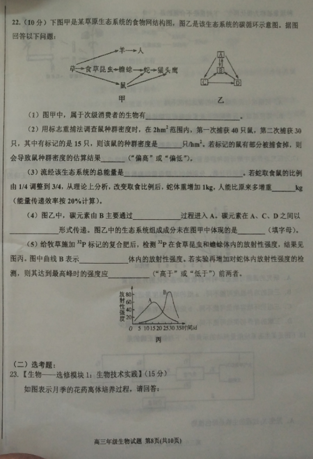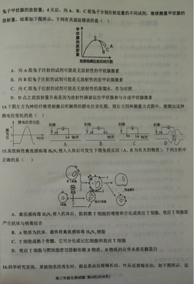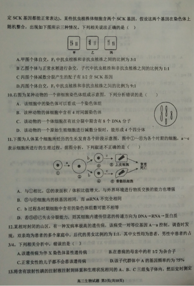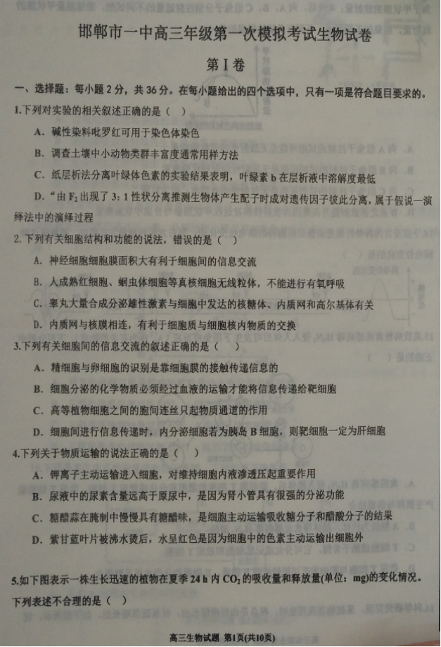 河北2017届高三五个一联盟上学期第一次模拟考试生物试卷02-07