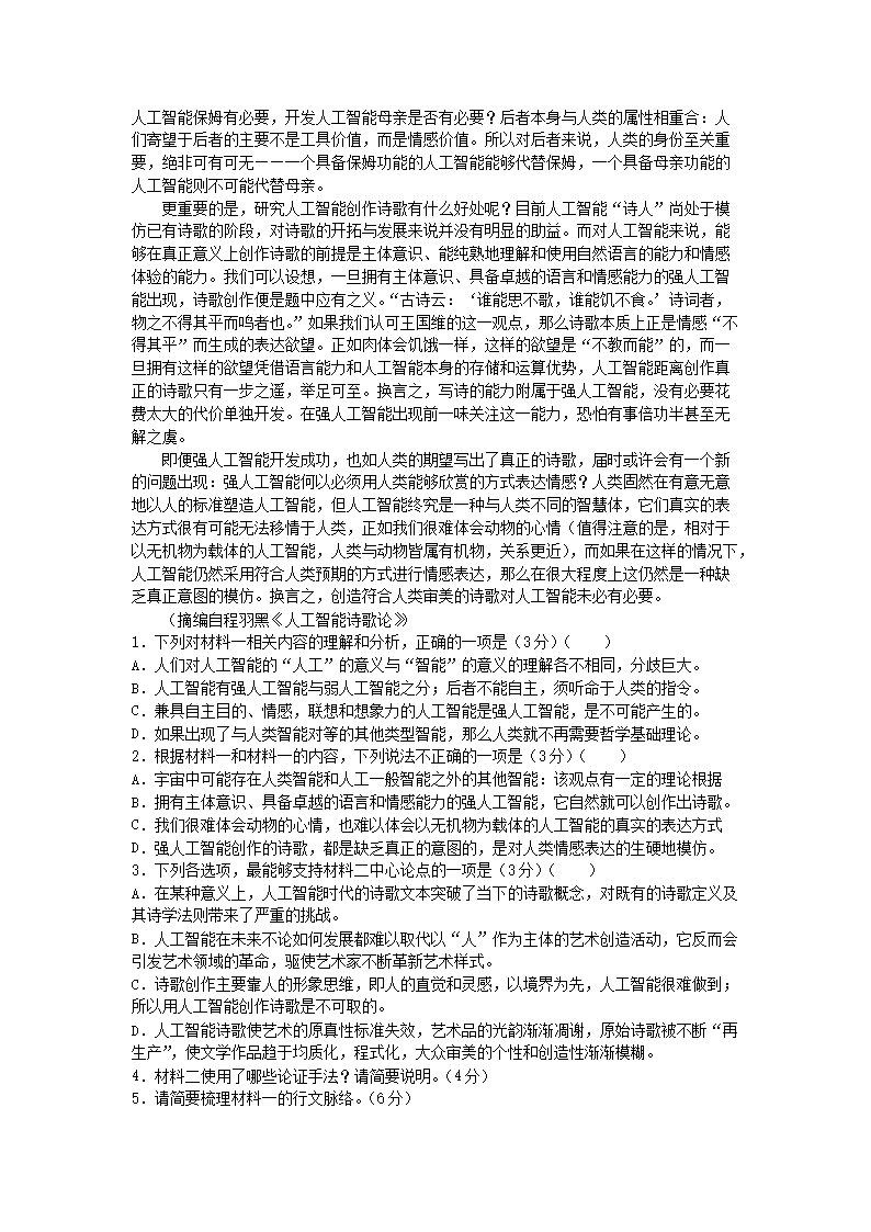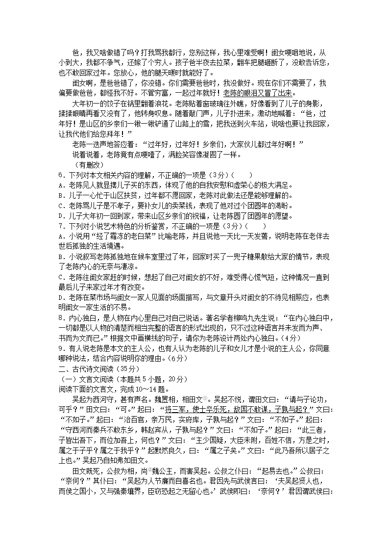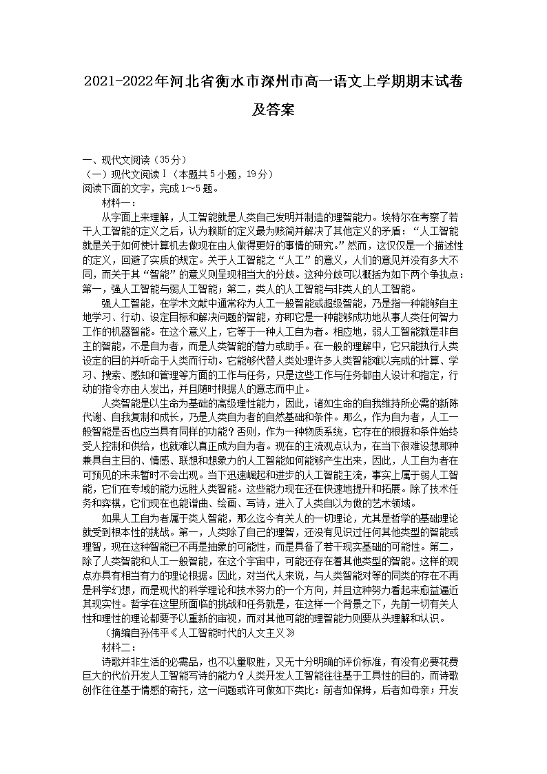 2021-2022年河北省衡水市深州市高一语文上学期期末试卷及答案(Word版)09-15