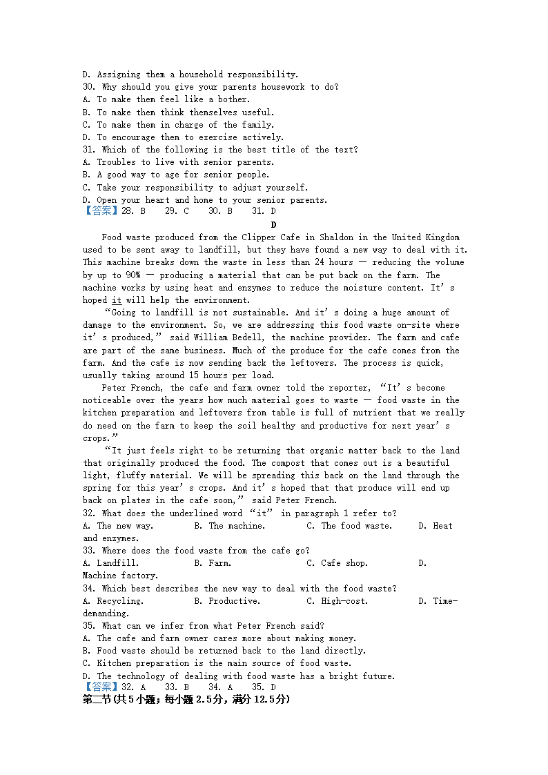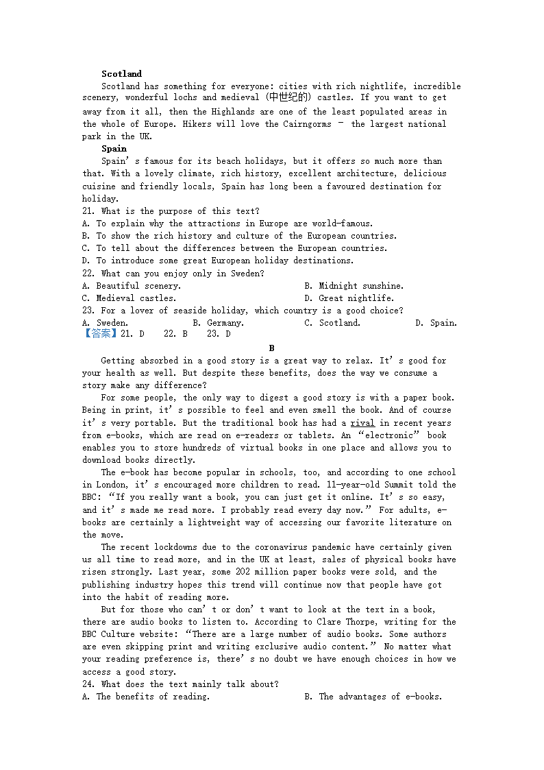 2021-2022年山东青岛高一英语下学期期末试卷及答案(Word版)09-29