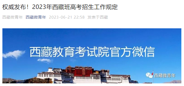 【#高考# 导语】®文档大全网从西藏微青年了解到,2023年西藏班高考招生工作规定已公布,相关事宜如下: