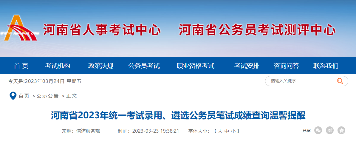 2023年河南省考公务员成绩查询时间及查分入口[3月24日公布]03-24