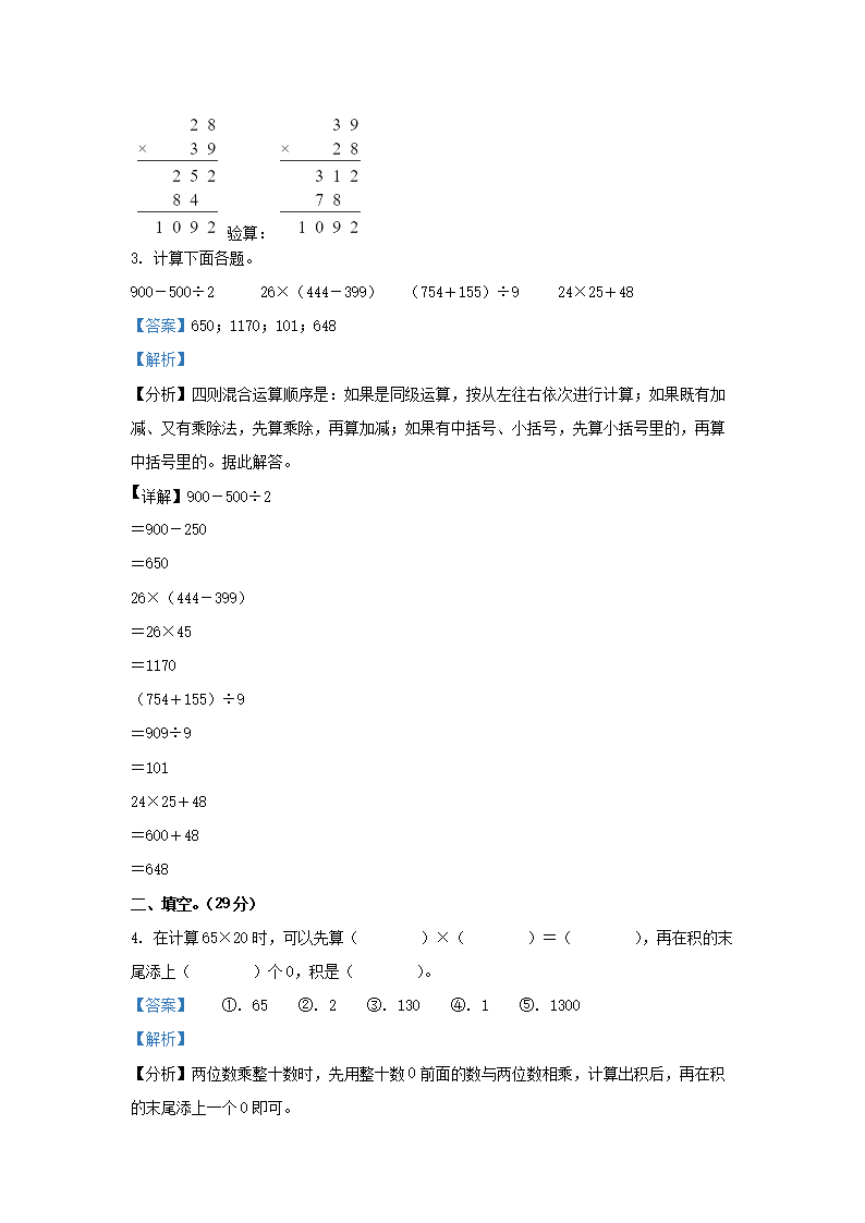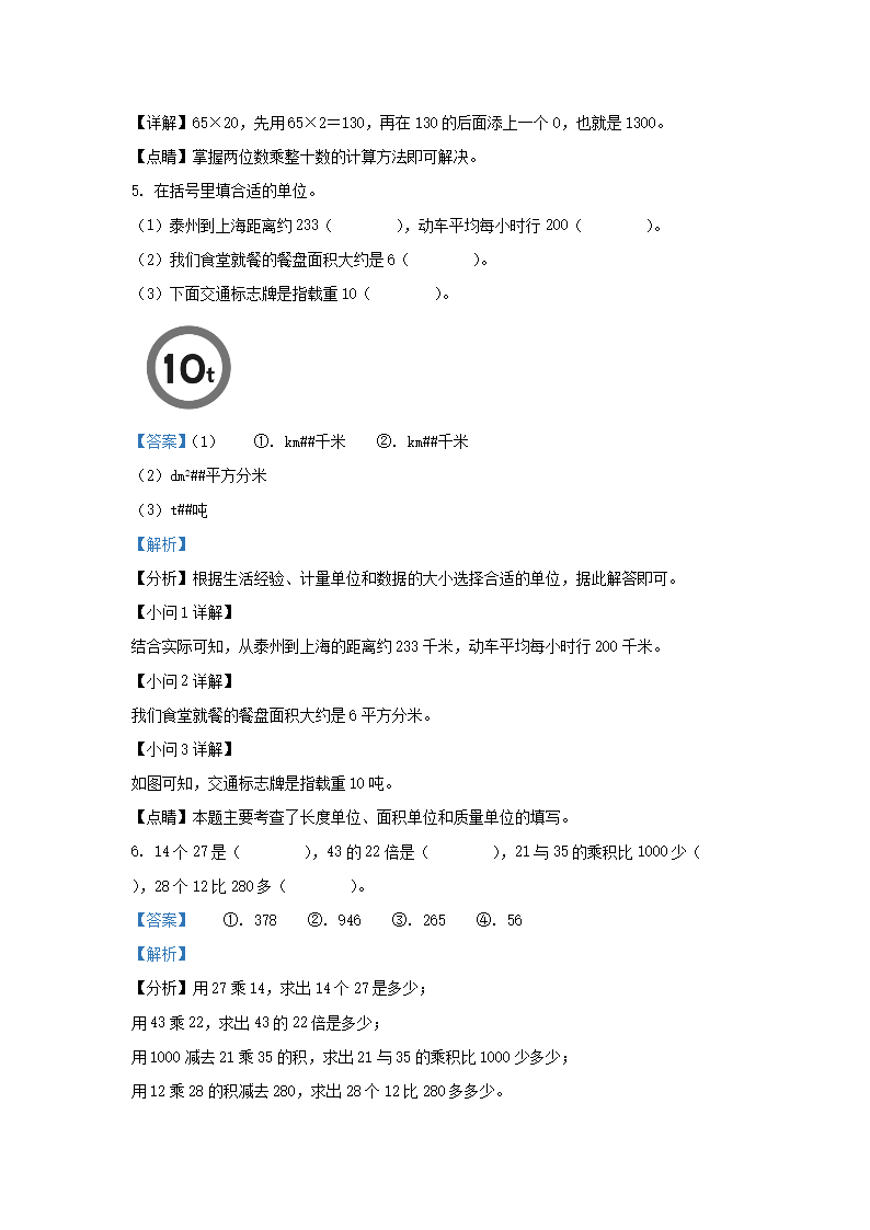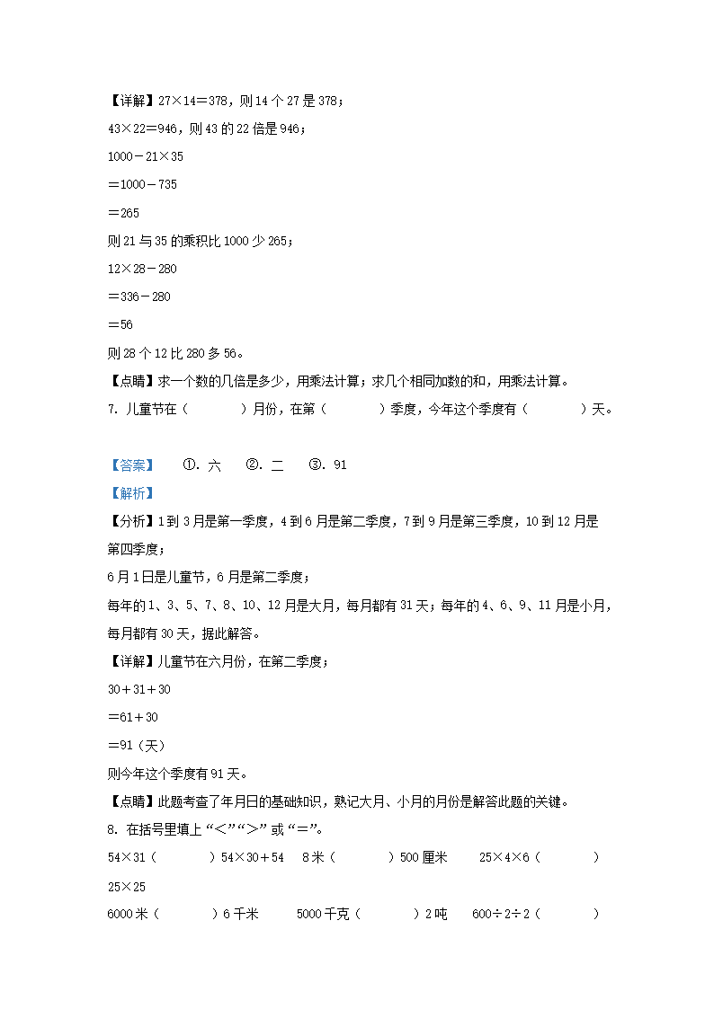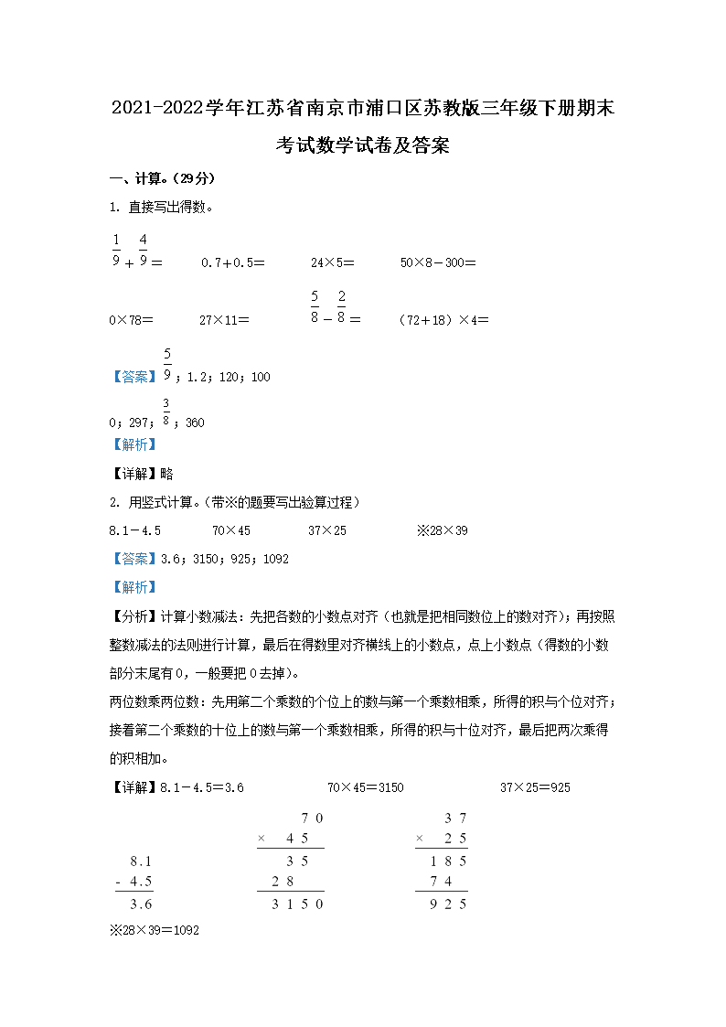 2021-2022学年江苏省南京市浦口区苏教版三年级下册期末考试数学试卷及答案(Word版)07-28