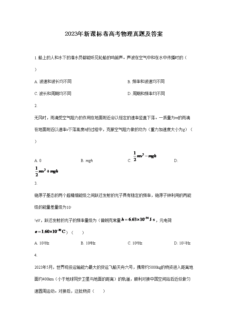 【文档预览】 文档大全网整理发布2023年新课标卷高考物理真题及答案(Word版),前五页预览如下: