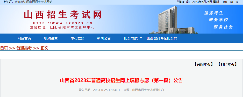2023年山西普通高校招生网上填报志愿(第一段)公告06-26