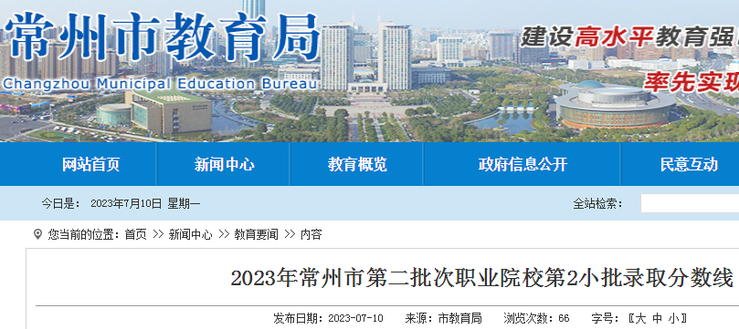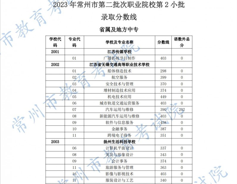 2023年江苏常州市第二批次职业院校第2小批录取分数线公布07-11