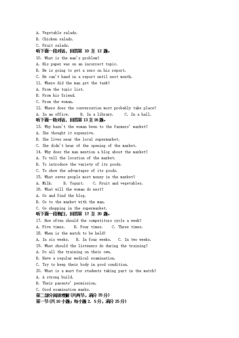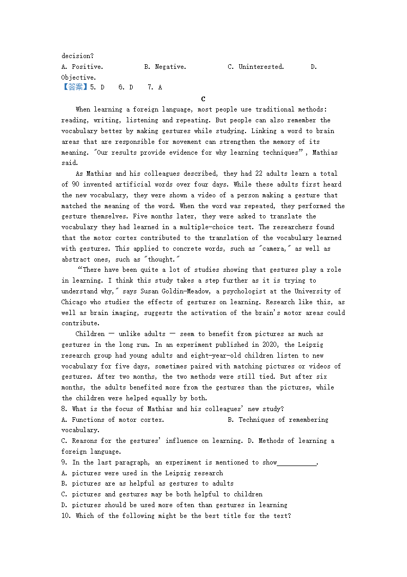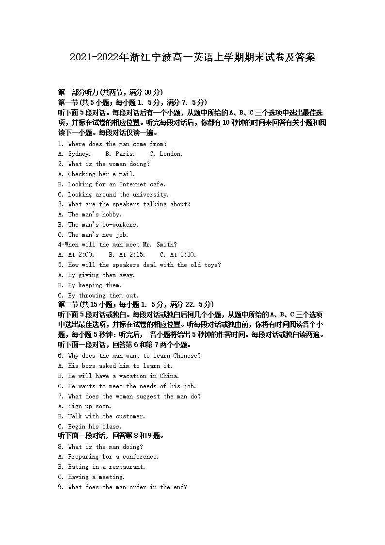 2021-2022年浙江宁波高一英语上学期期末试卷及答案(Word版)09-21