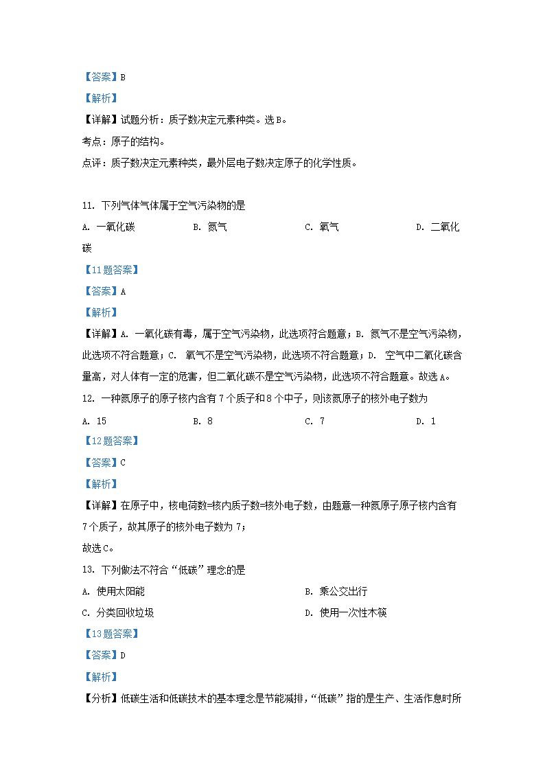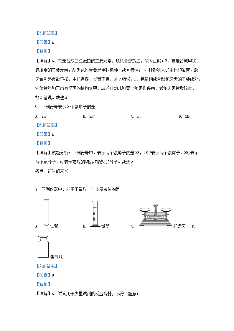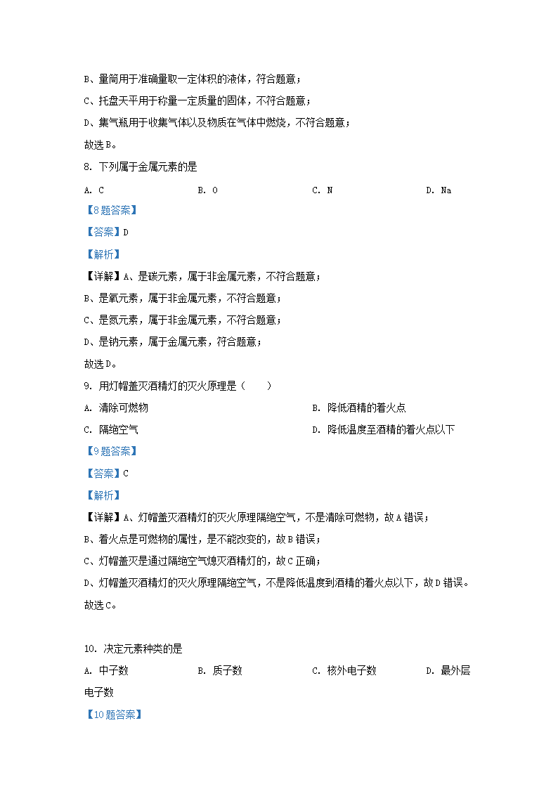 2020-2021学年北京东城区初三第一学期化学期末试卷及答案(Word版)07-22