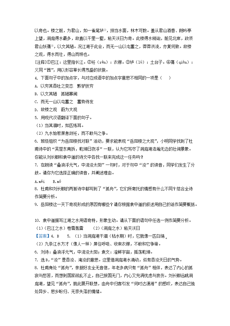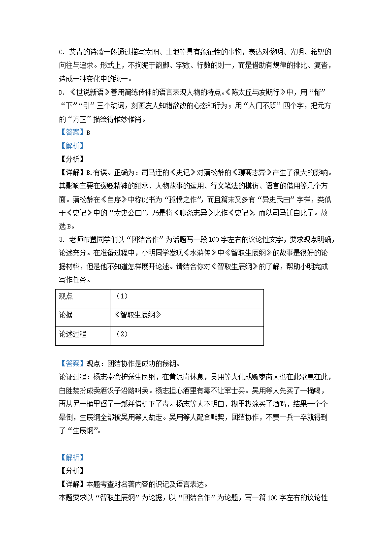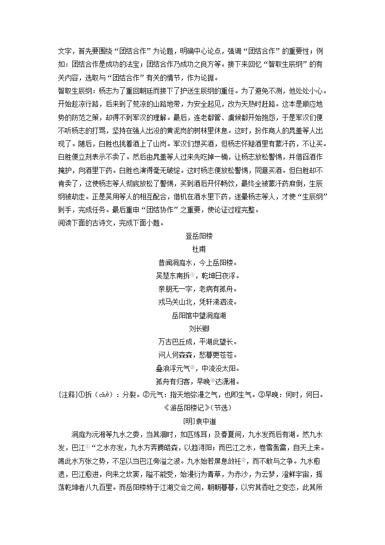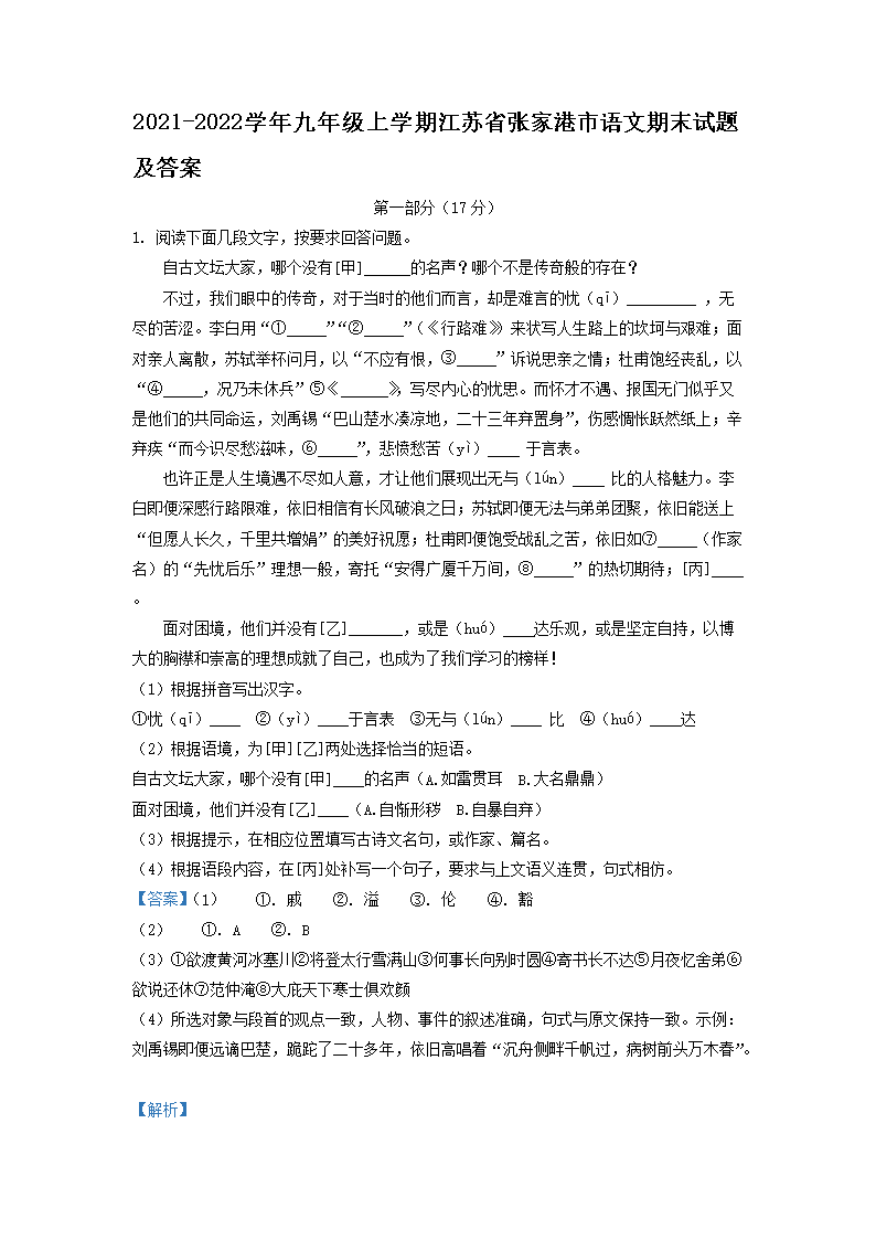 2021-2022学年九年级上学期江苏省张家港市语文期末试题及答案(Word版)09-08