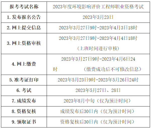 原文标题:关于2023年度环境影响评价工程师职业资格考试报名安排的通知
