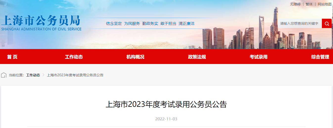 原文标题:上海市2023年度考试录用公务员公告