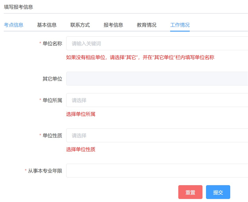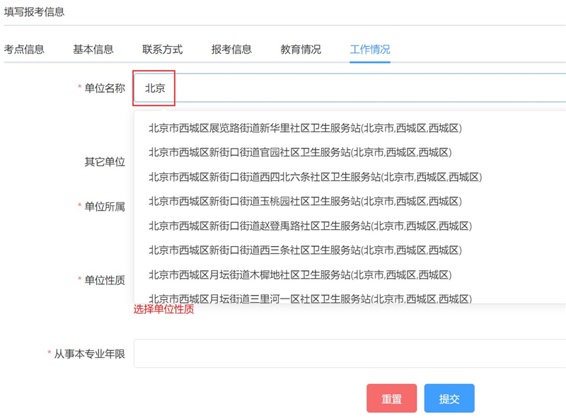 2.修改考区操作将会清空此项目下已经填写的报名信息,但不影响注册信息和基本信息。