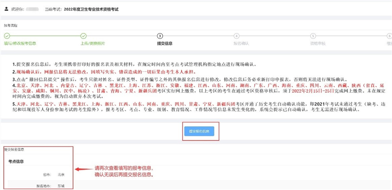 (4)报名信息提交后如发现填写错误,可以撤回信息提交,修改后重新提交报名信息。修改信息后务必要重新打印报名表,确保递交的报名表信息与最终提交的信息一致,否则无法进行报名确认。
