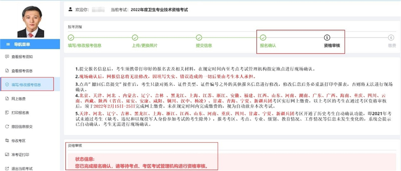 对于上述信息有变化的考生,系统会自动发出“网上预报名成功通知”;经考点核实可以自动确认的,系统会再次发出“报名结果通知”。历史考生请注意查看微信消息,收到“报名结果通知”的,无需进行现场确认;未收到“报名结果通知的”,请及时进行现场确认。