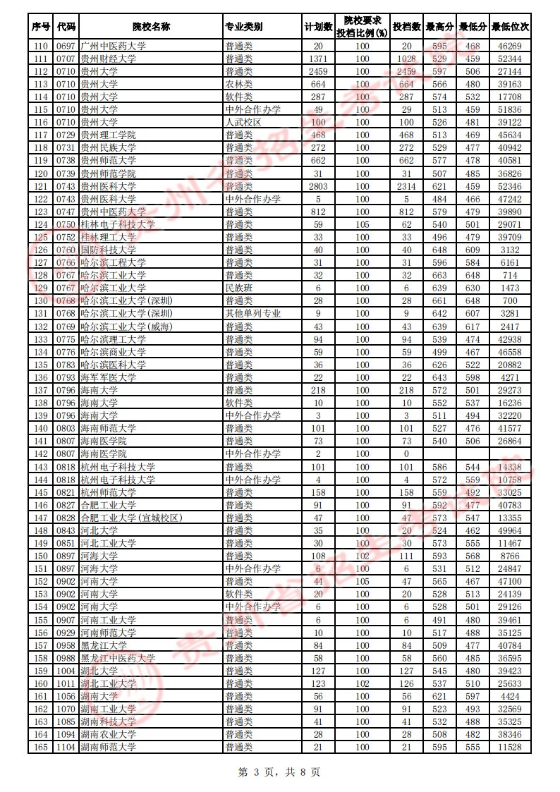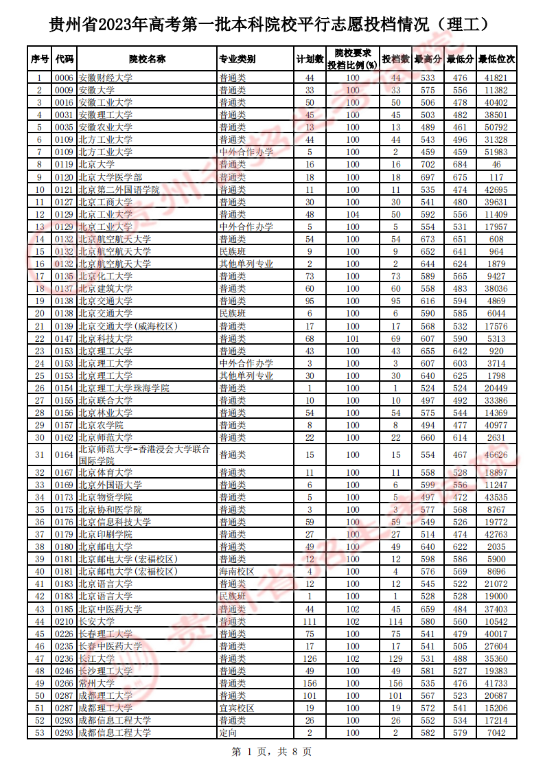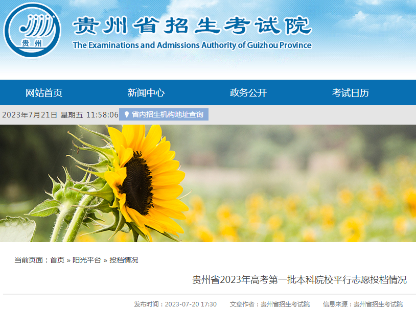 贵州省2023年高考第一批本科院校平行志愿投档情况公布07-22