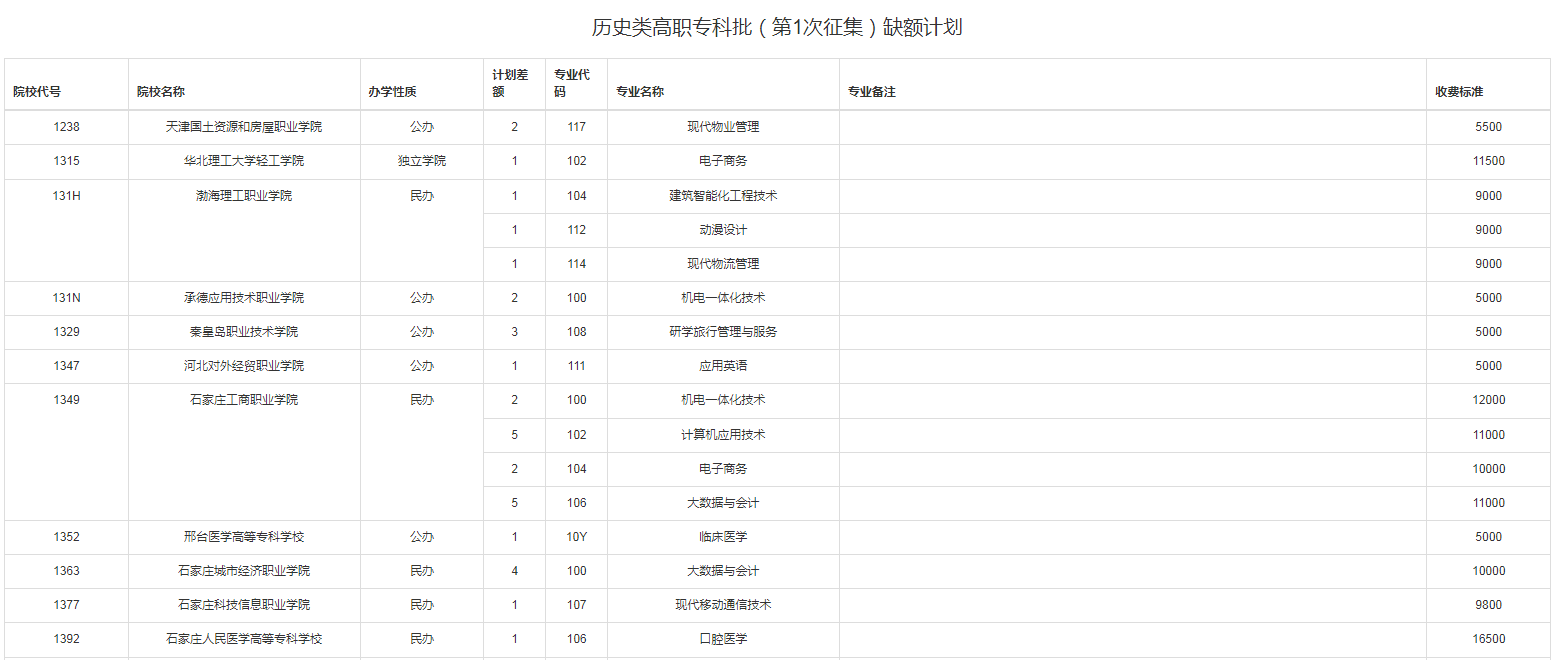 重庆2023年历史类高职专科批(第1次征集)缺额计划08-11