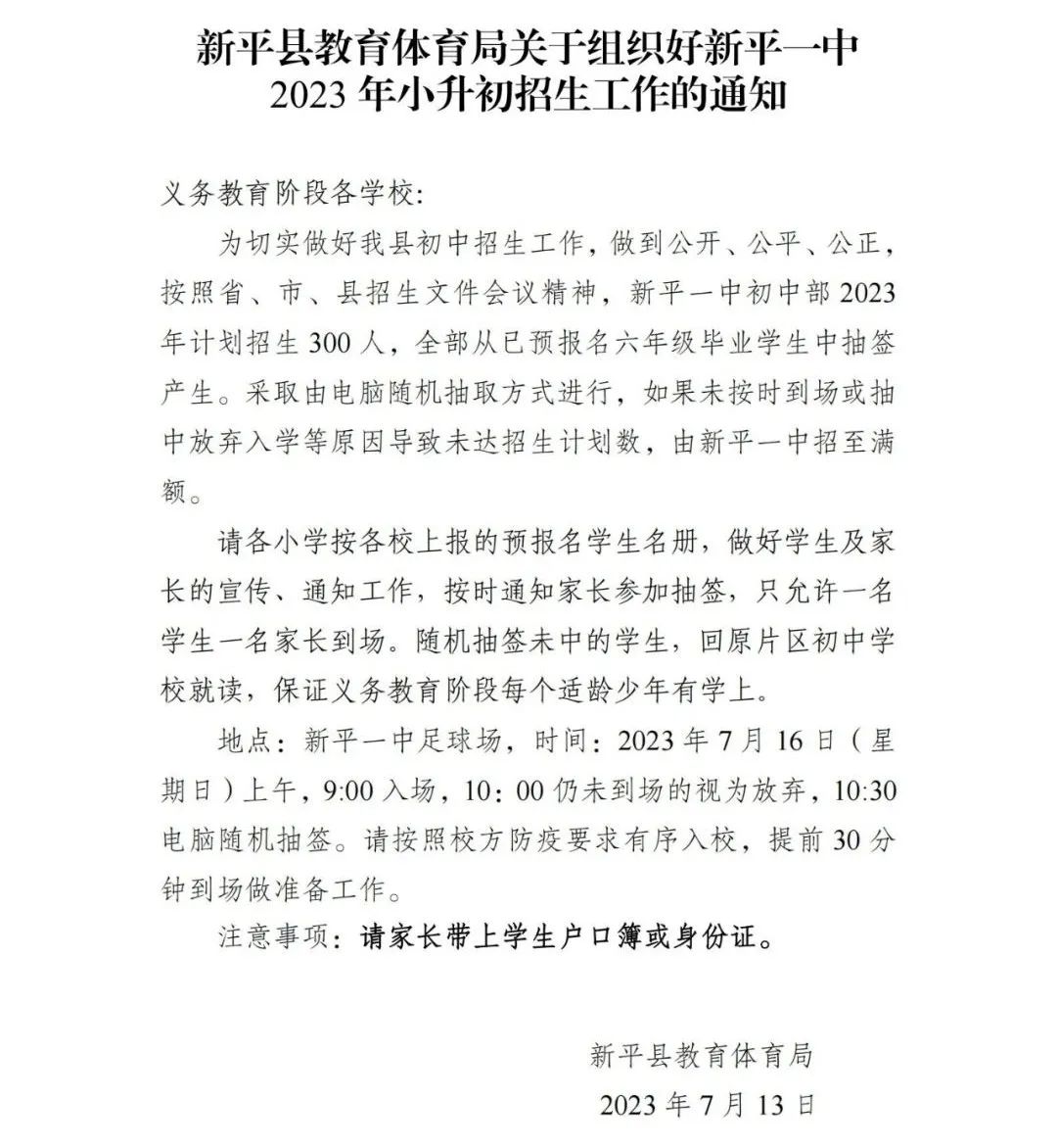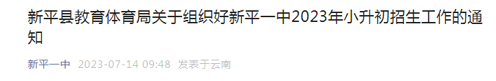 云南玉溪新平一中2023年小升初招生工作的通知07-15