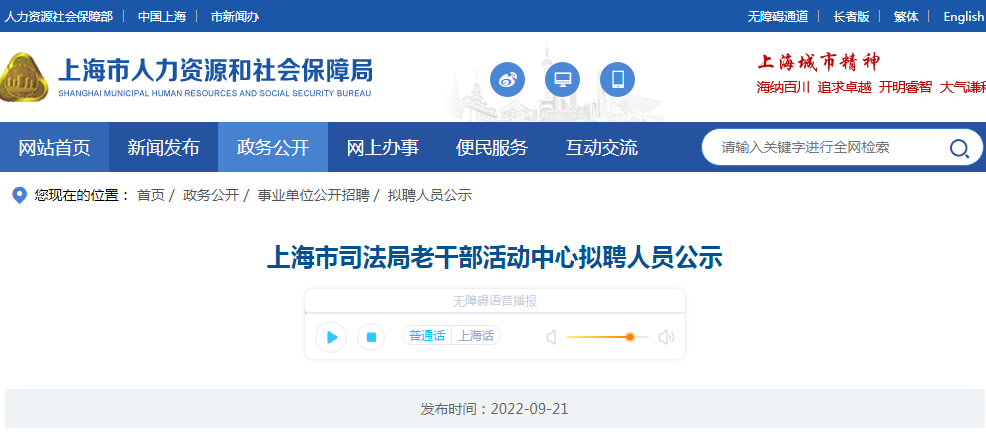 原文标题:上海市司法局老干部活动中心拟聘人员公示