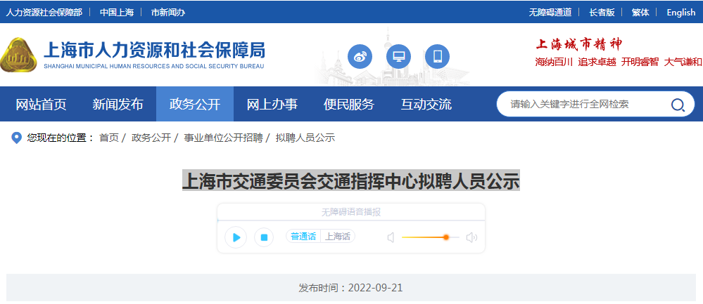 原文标题:上海市交通委员会交通指挥中心拟聘人员公示