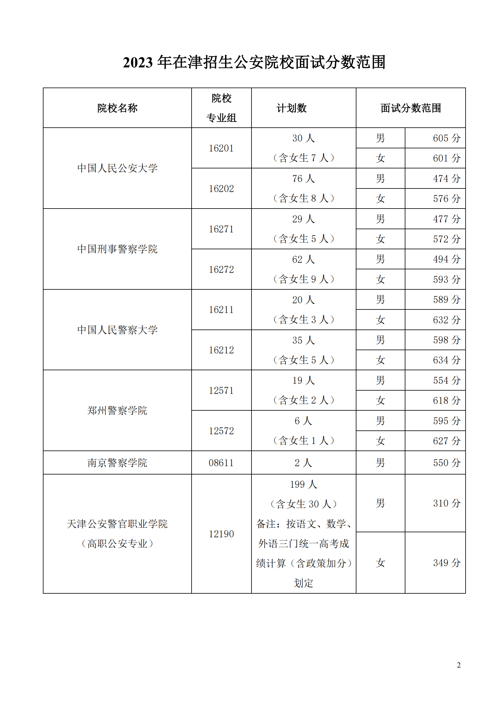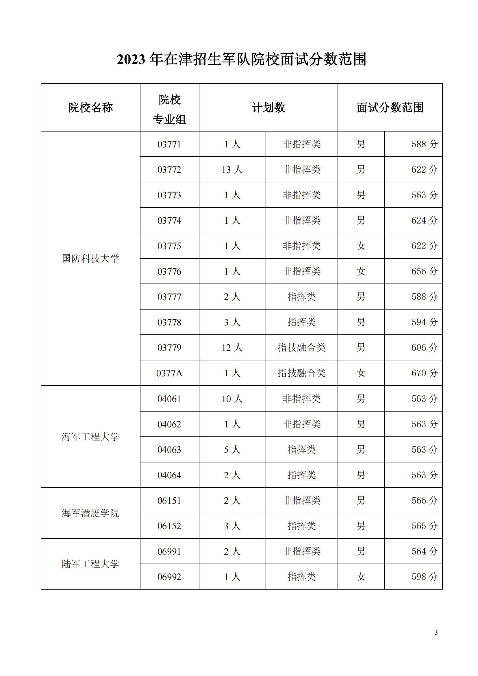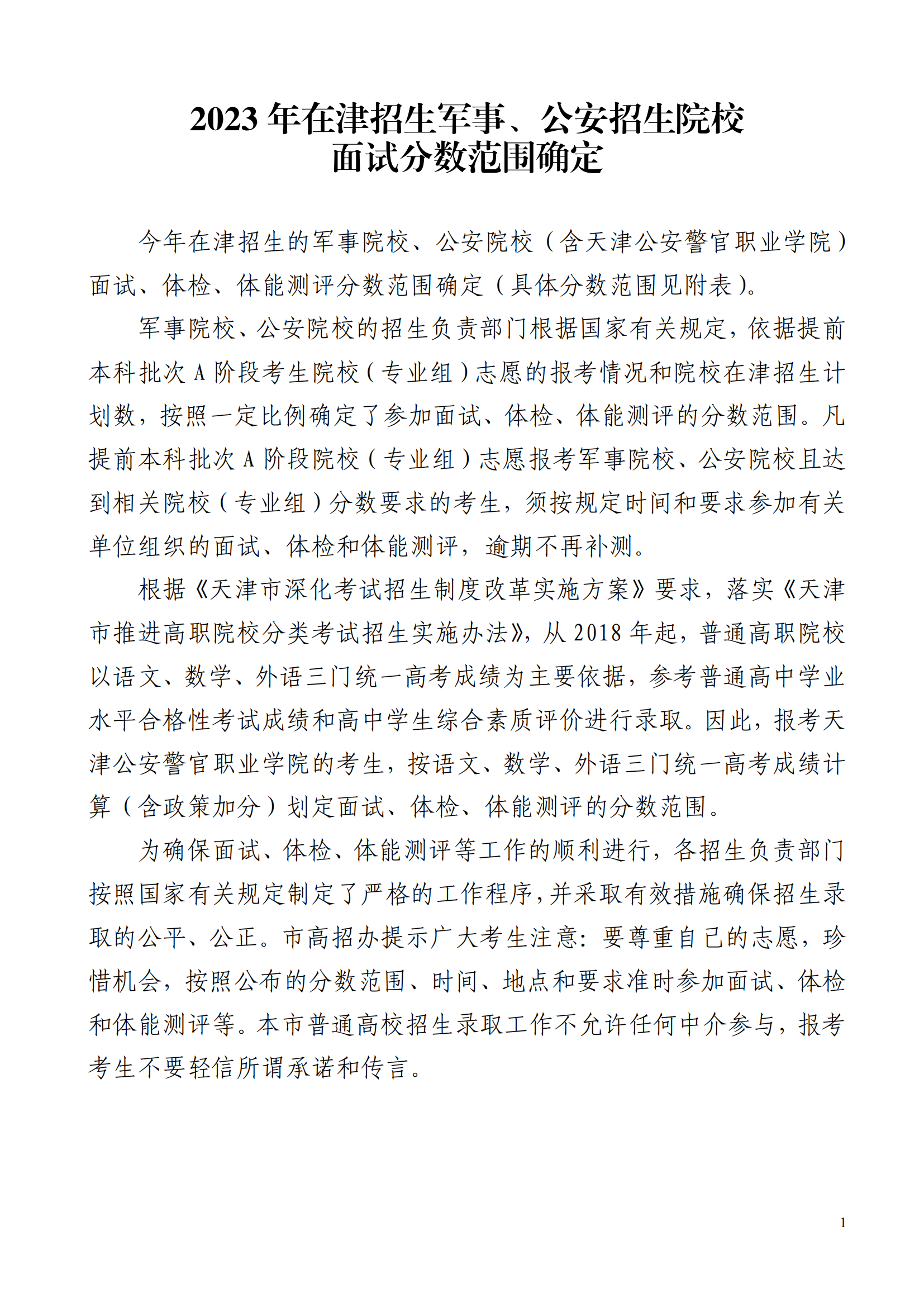 2023年在天津招生军事、公安招生院校面试分数范围确定06-29