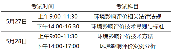 2023年安徽环境影响评价工程师考试时间:5月27日-28日03-30