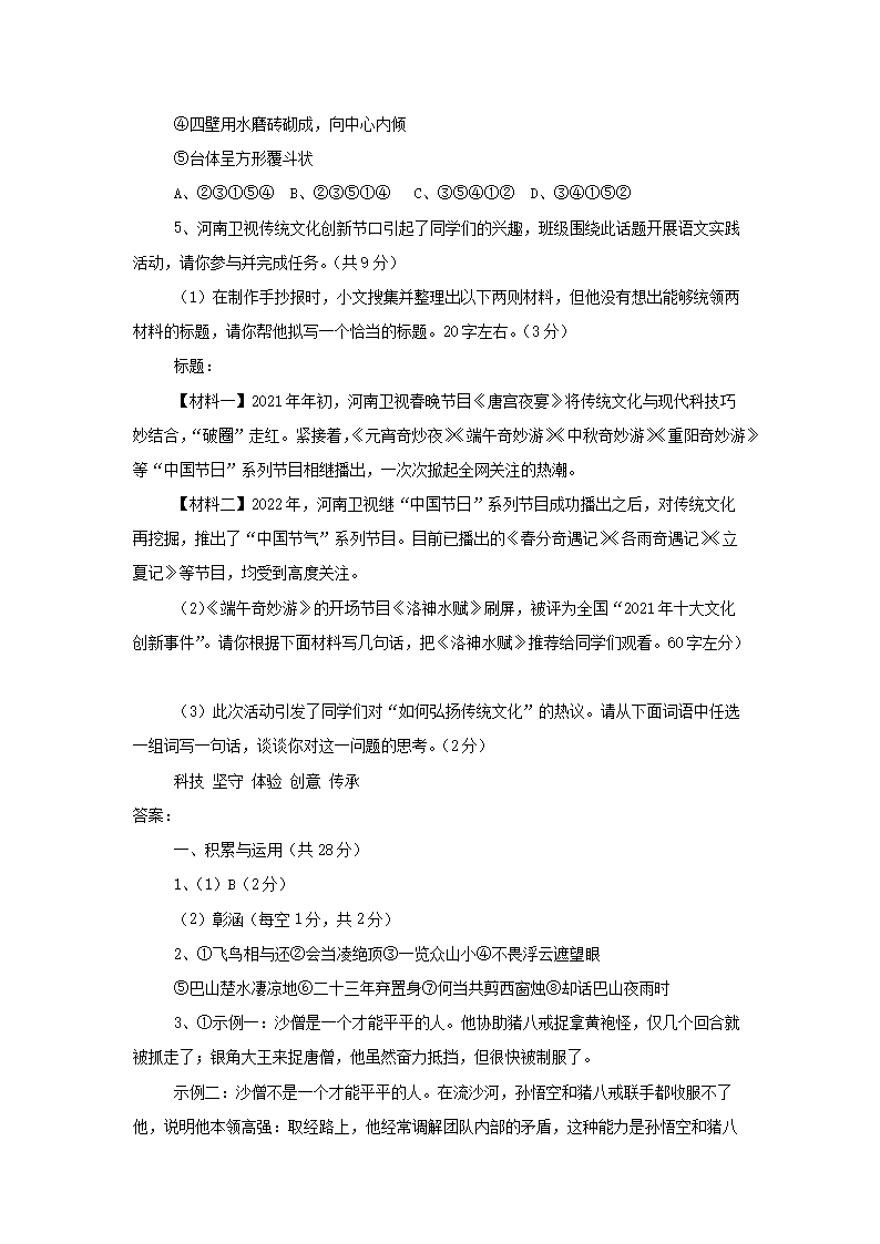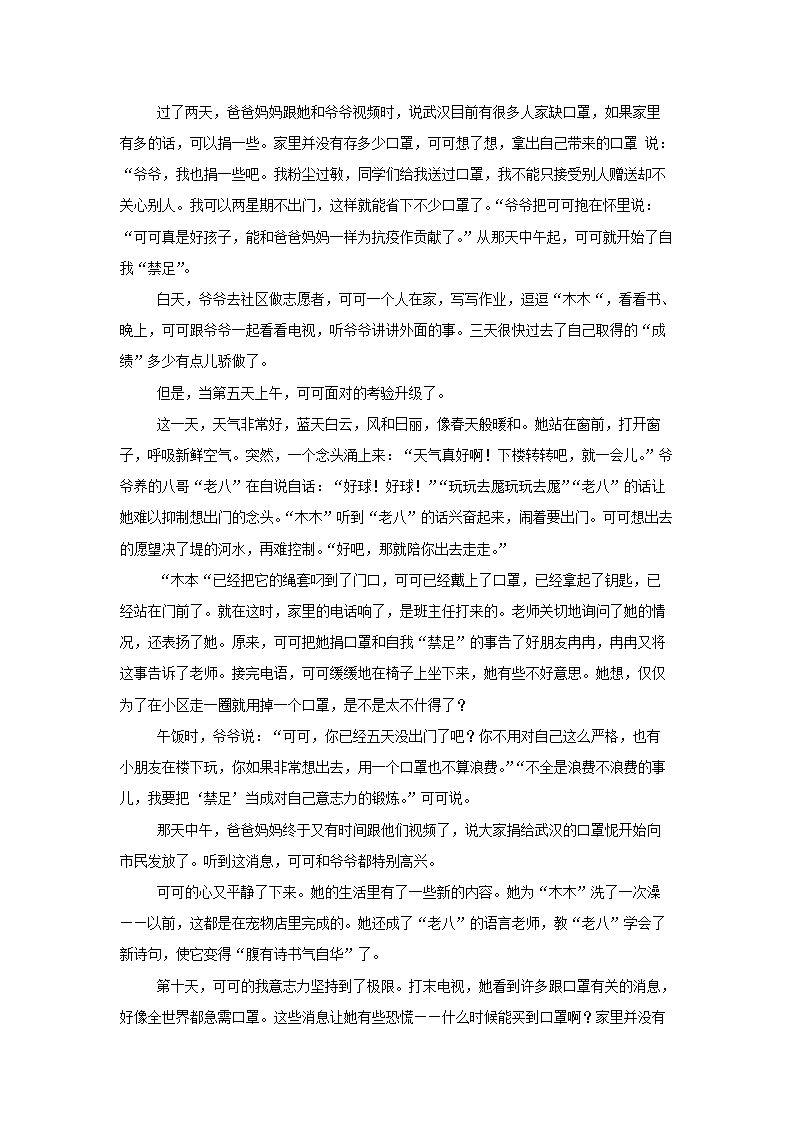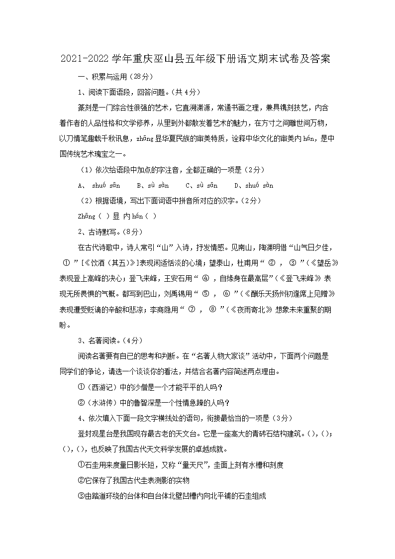 2021-2022学年重庆巫山县五年级下册语文期末试卷及答案(Word版)07-29