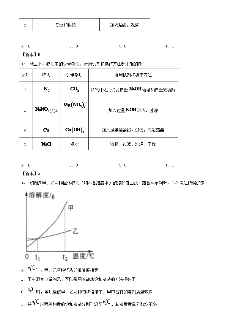 2023年黑龙江哈尔滨中考化学真题及答案(Word版)08-09