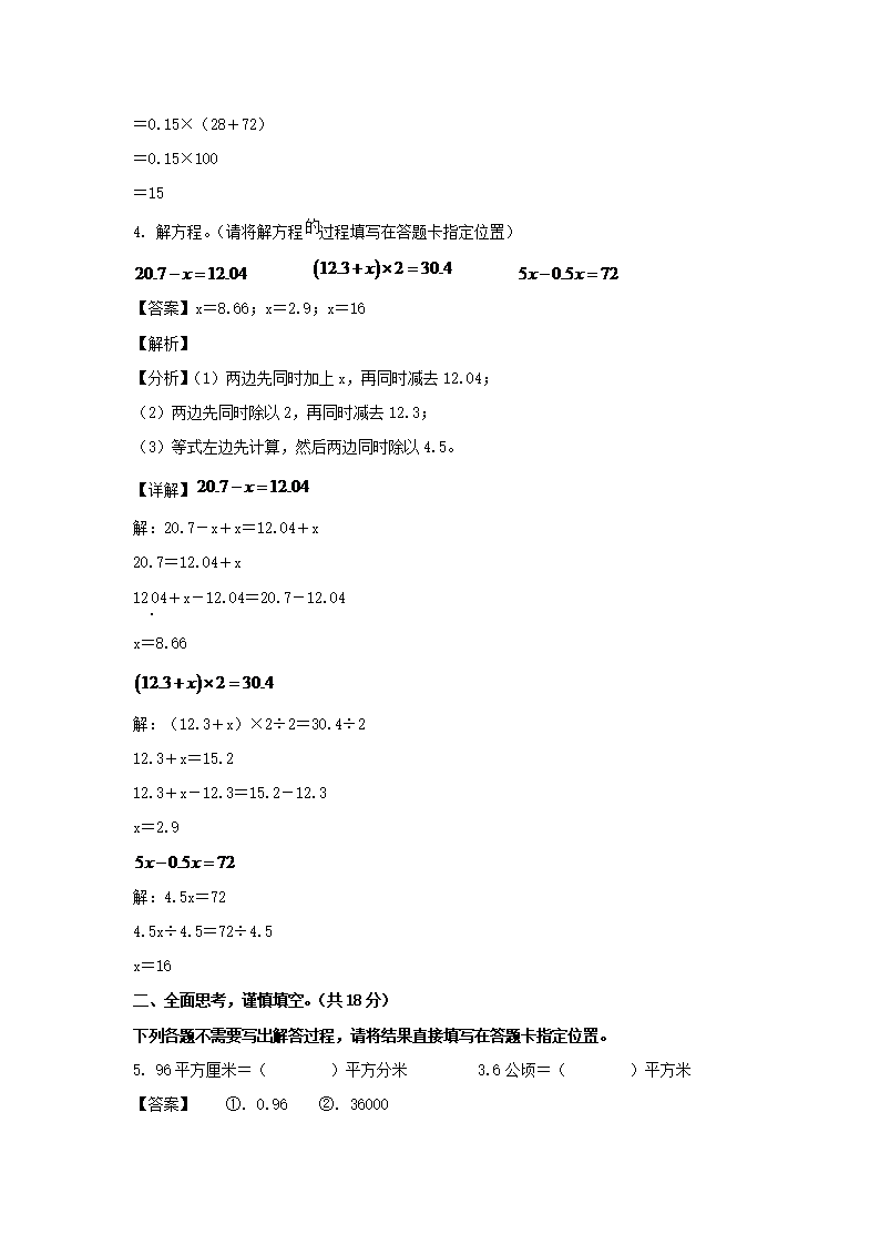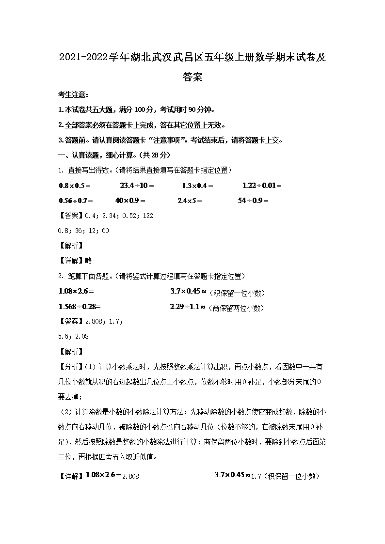 2021-2022学年湖北武汉武昌区五年级上册数学期末试卷及答案(Word版)09-07