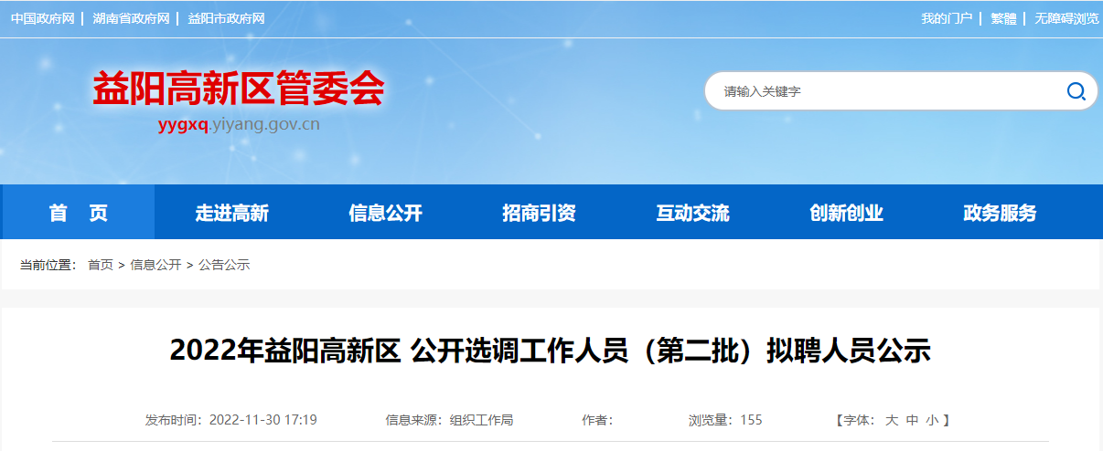 2022年第二批湖南益阳高新区公开选调工作人员拟聘人员公示12-02