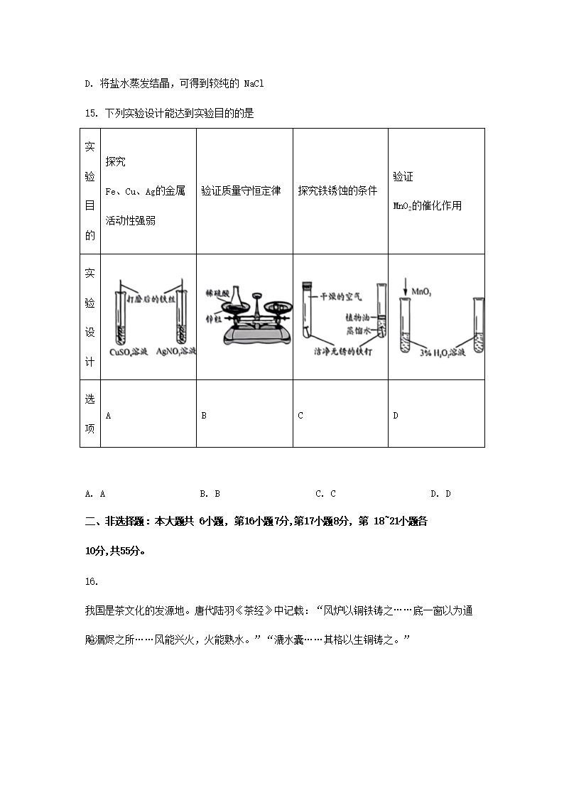 2023年广东肇庆中考化学真题及答案(Word版)07-01
