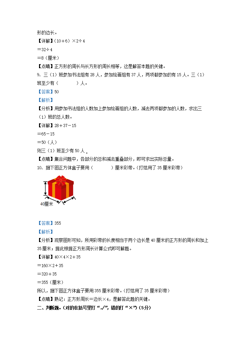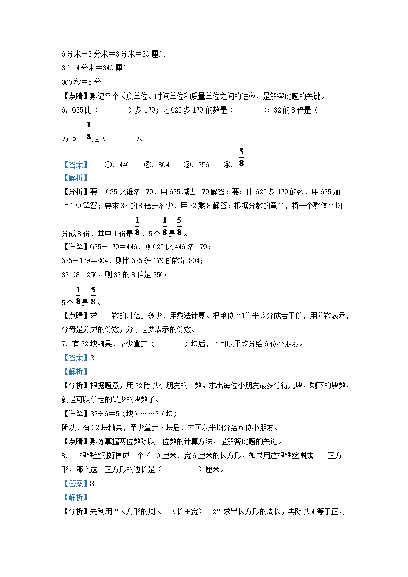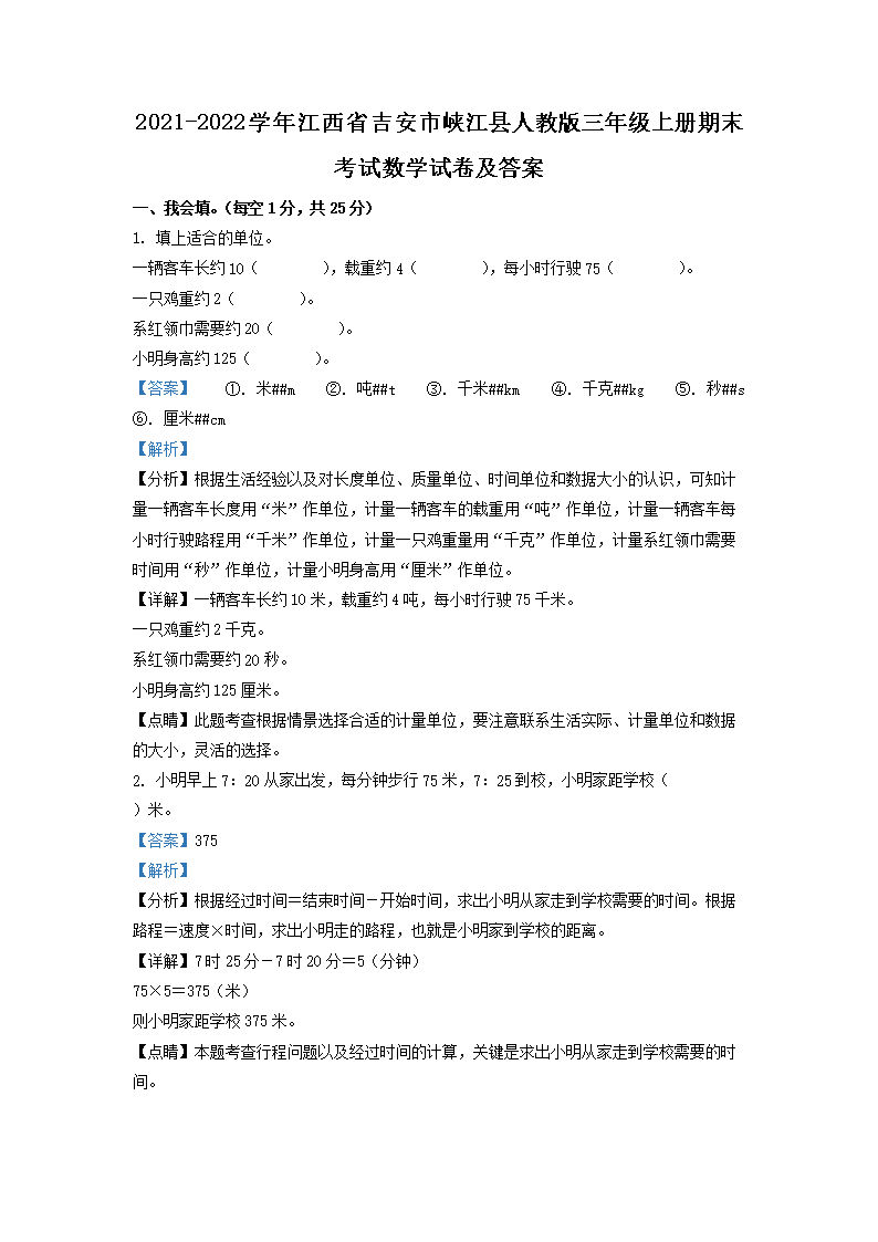 2021-2022学年江西省吉安市峡江县人教版三年级上册期末考试数学试卷及答案(Word版)09-27