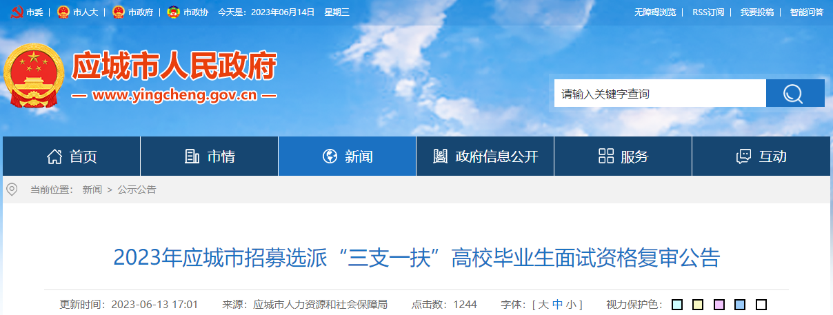 原文标题:2023年应城市招募选派“三支一扶”高校毕业生面试资格复审公告