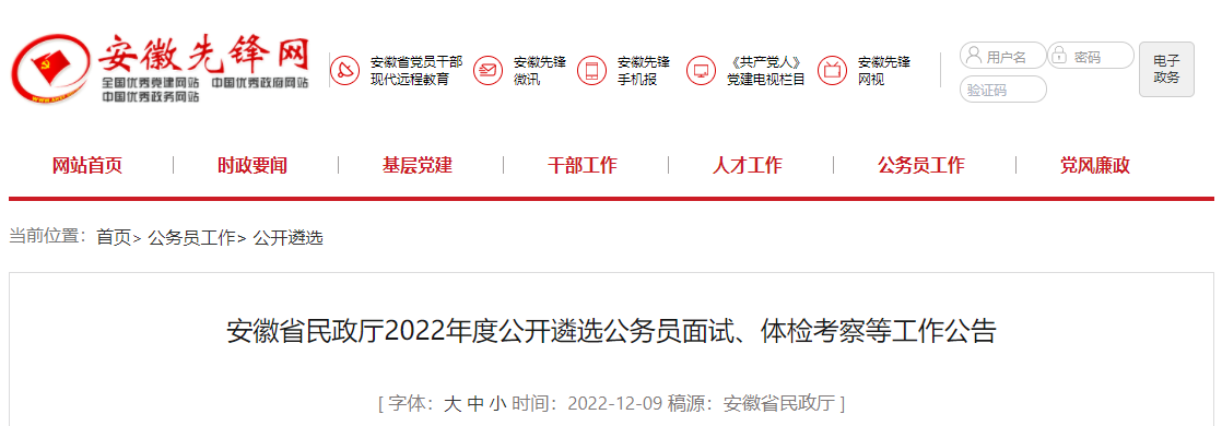 原文标题:安徽省民政厅2022年度公开遴选公务员面试、体检考察等工作公告