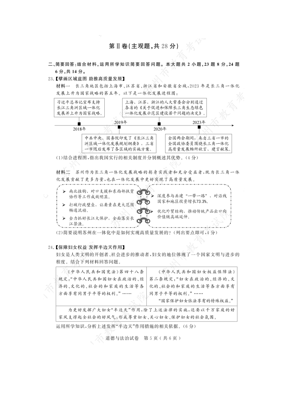 【文档预览】 文档大全网整理发布2023年江苏苏州中考道德与法治试题及答案(图片版),前五页预览如下: