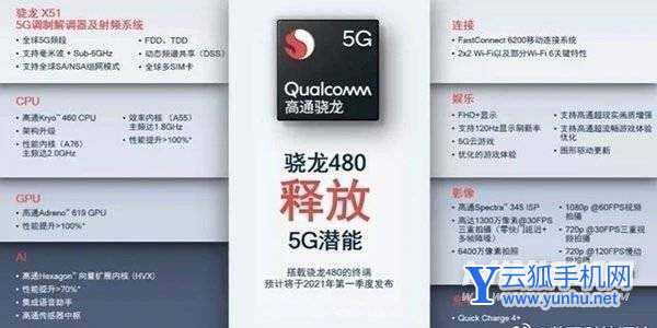 骁龙480+采用骁龙X51 5G调制解调器及射频系统,支持毫米波和Sub-6GHz5G连接,支持SA和NSA双模组网,并支持TDD、FDD以及动态频谱共享(DSS),带来极佳的移动性能和连接体验。