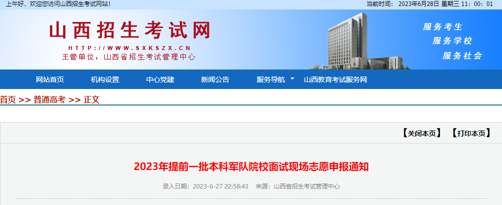 【#高考# 导语】®文档大全网从山西招生考试网了解到,2023年山西高考提前一批本科军队院校面试现场志愿申报通知公布,相关事宜如下: