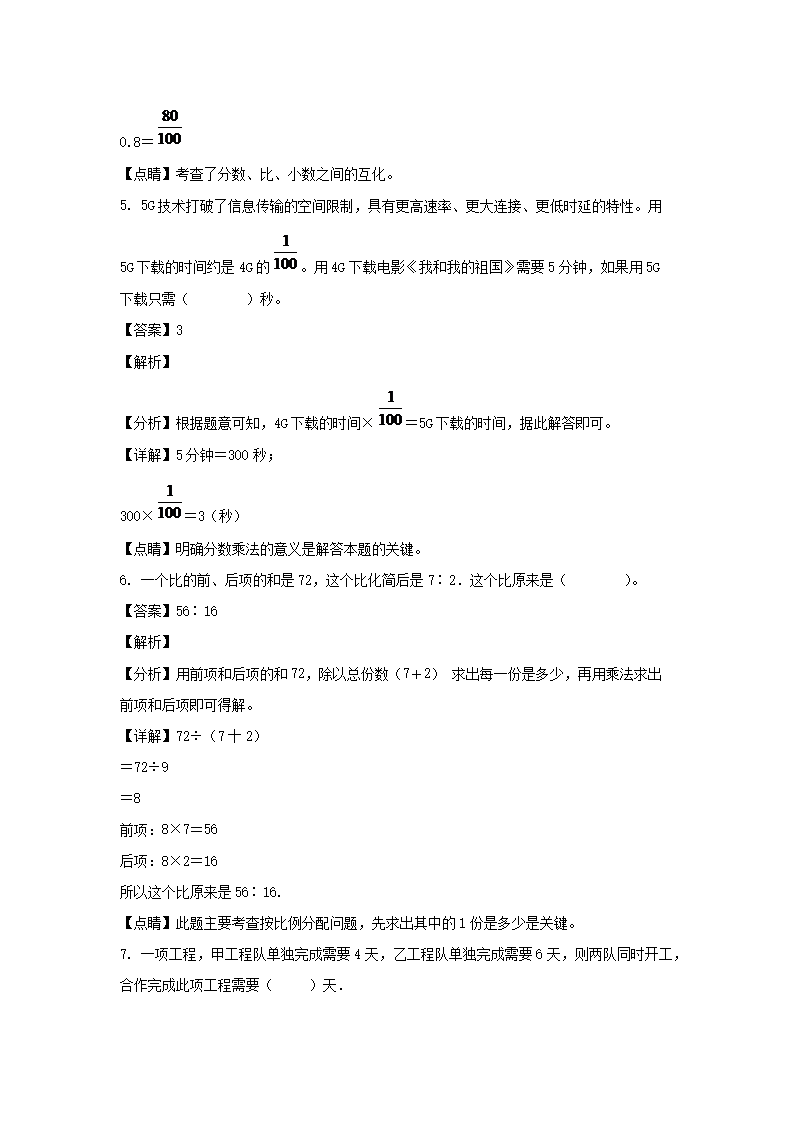 2021-2022年湖北咸宁通城县六年级上册期中数学试卷及答案(人教版)(Word版)09-21