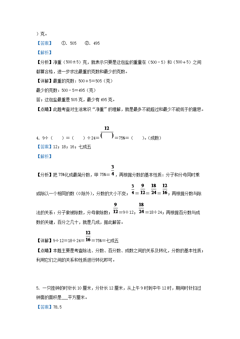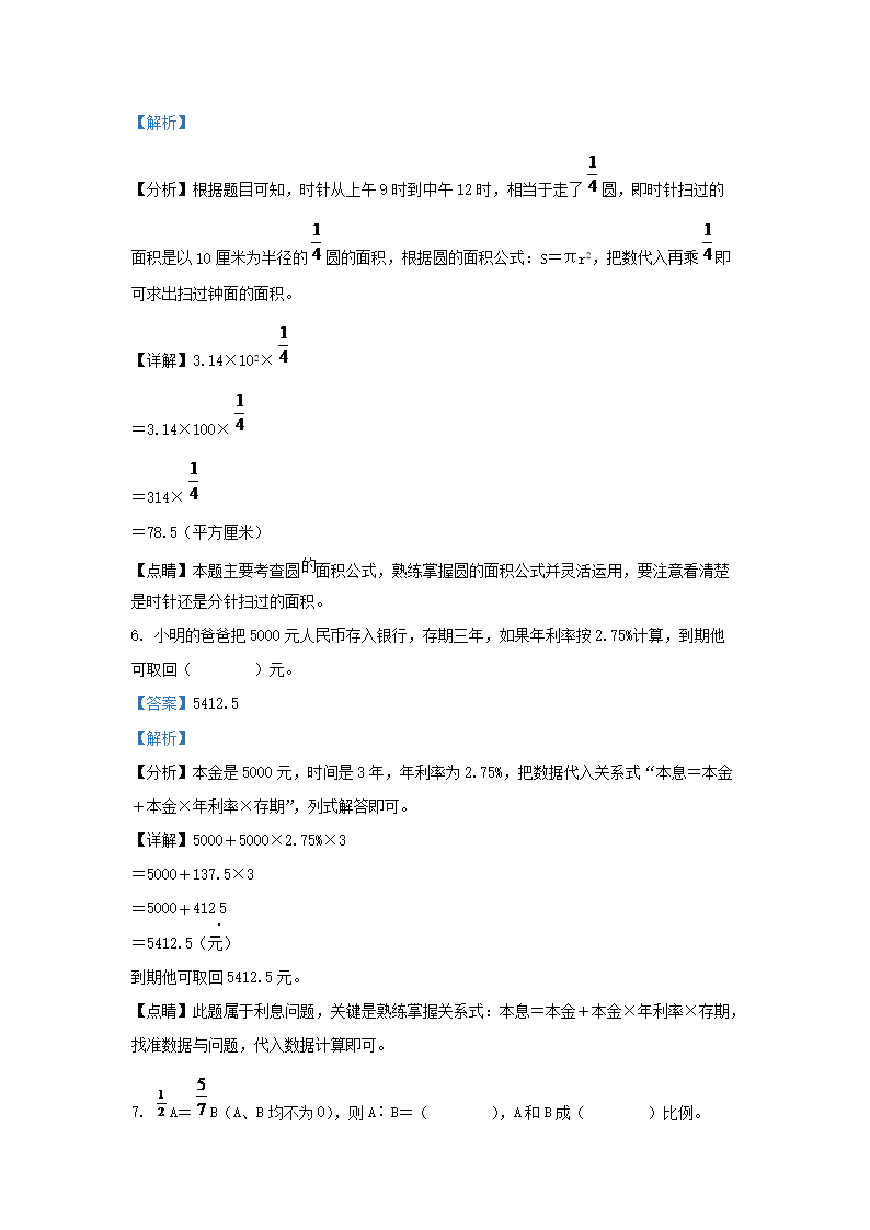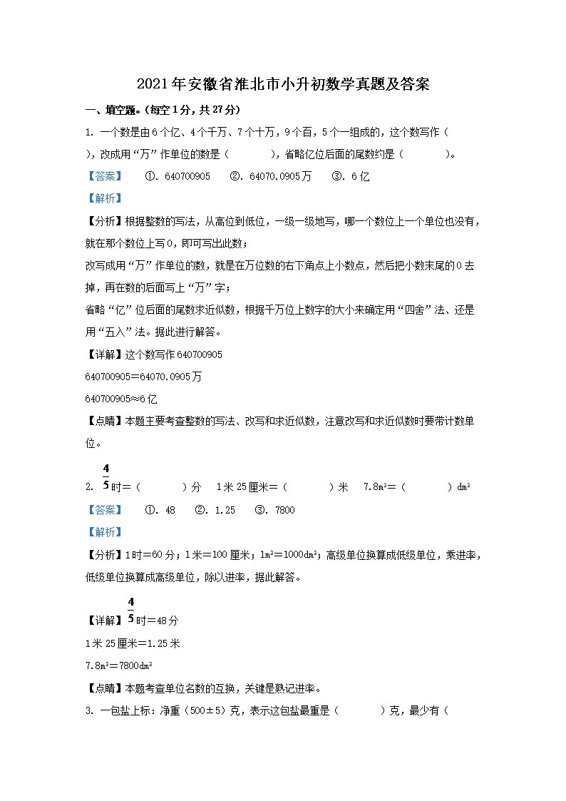 2021年安徽省淮北市小升初数学真题及答案(Word版)09-26