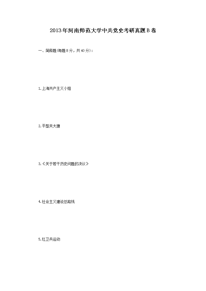 【文档预览】 文档大全网整理发布2013年河南师范大学中共党史考研真题B卷(Word版),前五页预览如下: