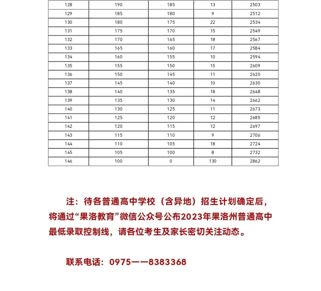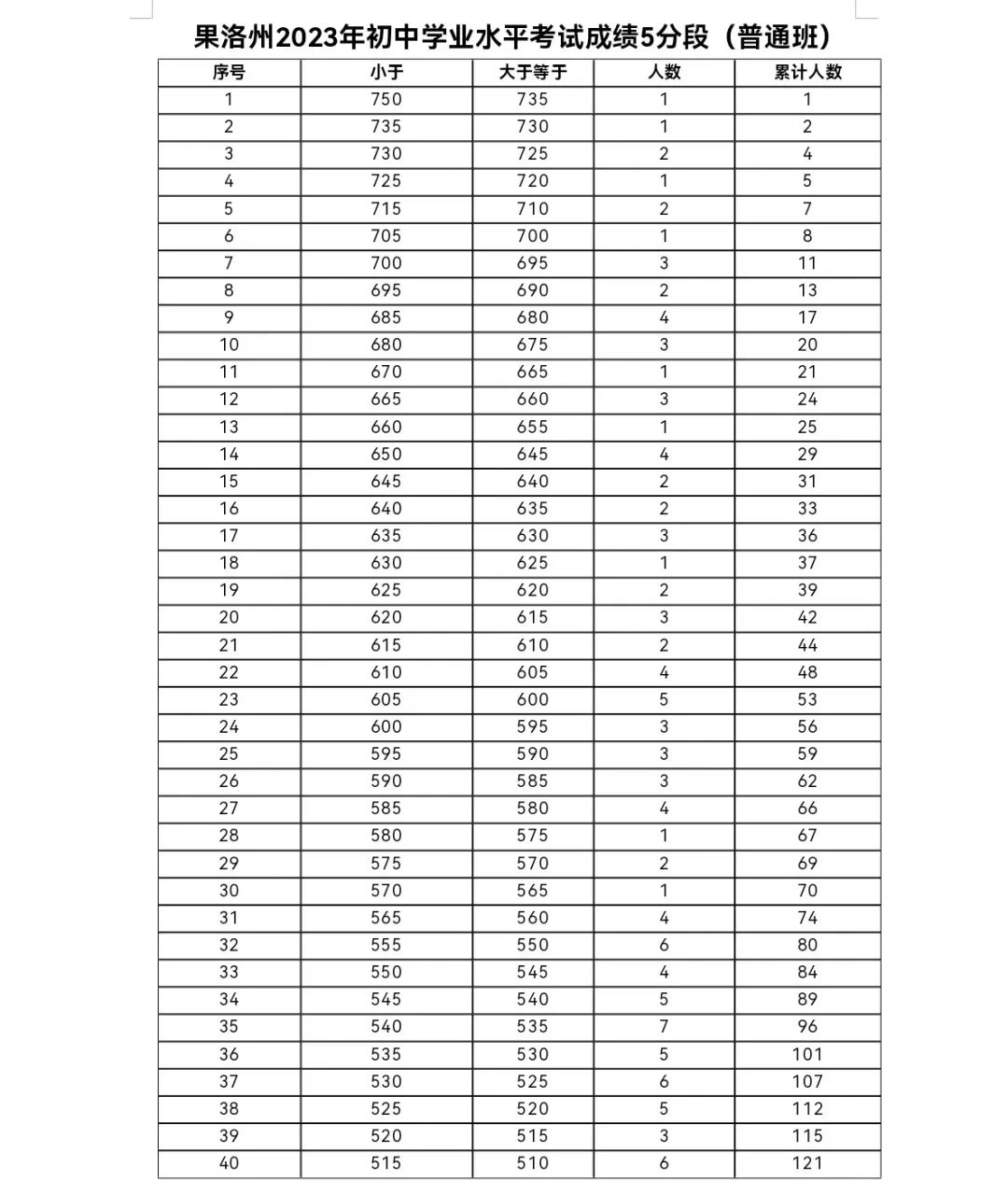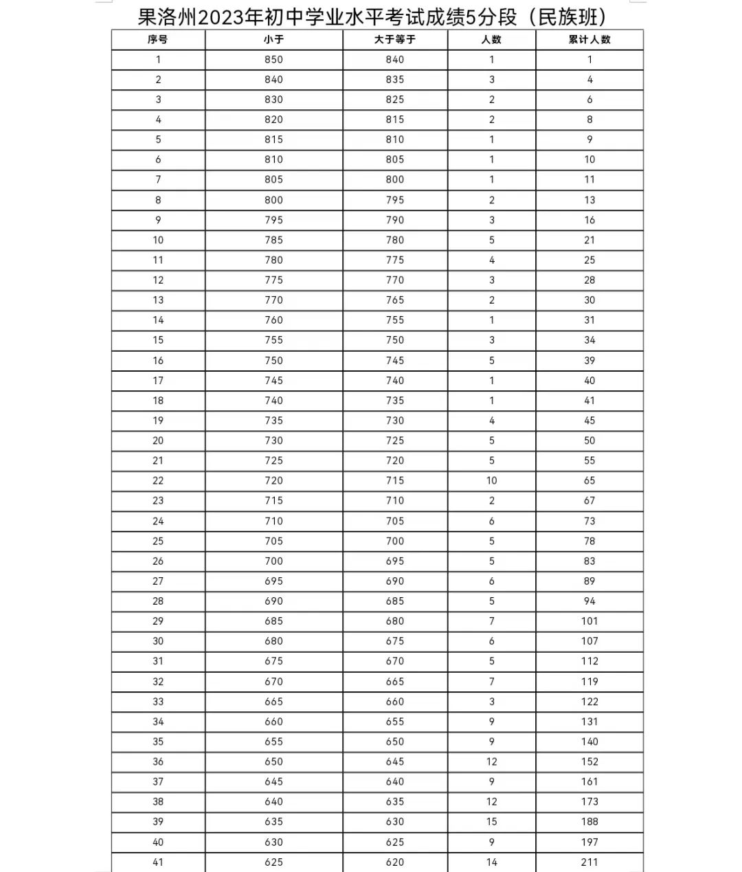 2023年青海果洛州初中学业水平考试成绩5分段表07-18