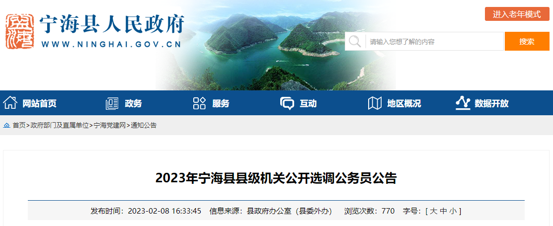 原文标题:2023年宁海县县级机关公开选调公务员公告