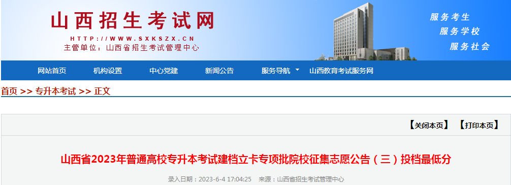 原文标题:山西省2023年普通高校专升本考试建档立卡专项批院校征集志愿公告(三)投档最低分