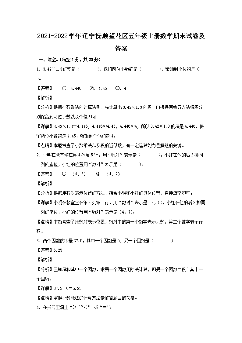 【文档预览】 文档大全网整理发布2021-2022学年辽宁抚顺望花区五年级上册数学期末试卷及答案(Word版),前五页预览如下: