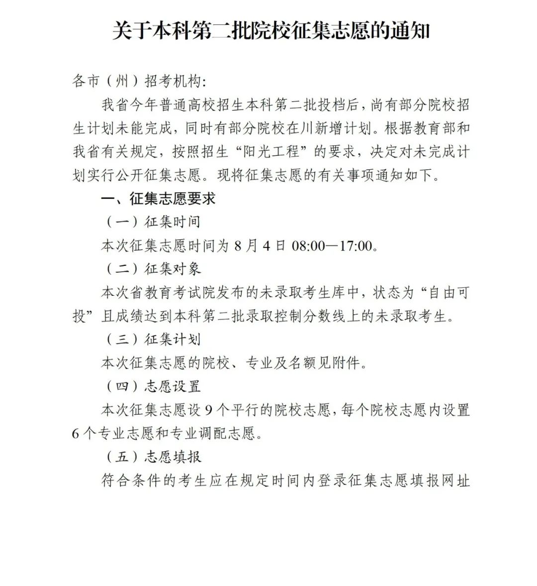 2023年四川高考本科第二批院校征集志愿的通知公布08-04